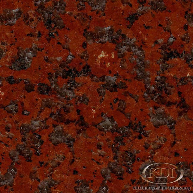 Designer Comments: Bold red granite, black rock, and gray quartz combine to make Rosso Africa stand out from the crowd. The word rosso means "red" in Italian; the granite probably got its name upon arriving in Italy for polishing. And boy, is it red. With its black spots and polished red core, it may look like a ladybug, but it's no creepy-crawly. More like a classic hot rod, its bright red surface combines smartly with black & white accents and chrome accessories. Scroll down to see some alternative red granites below.